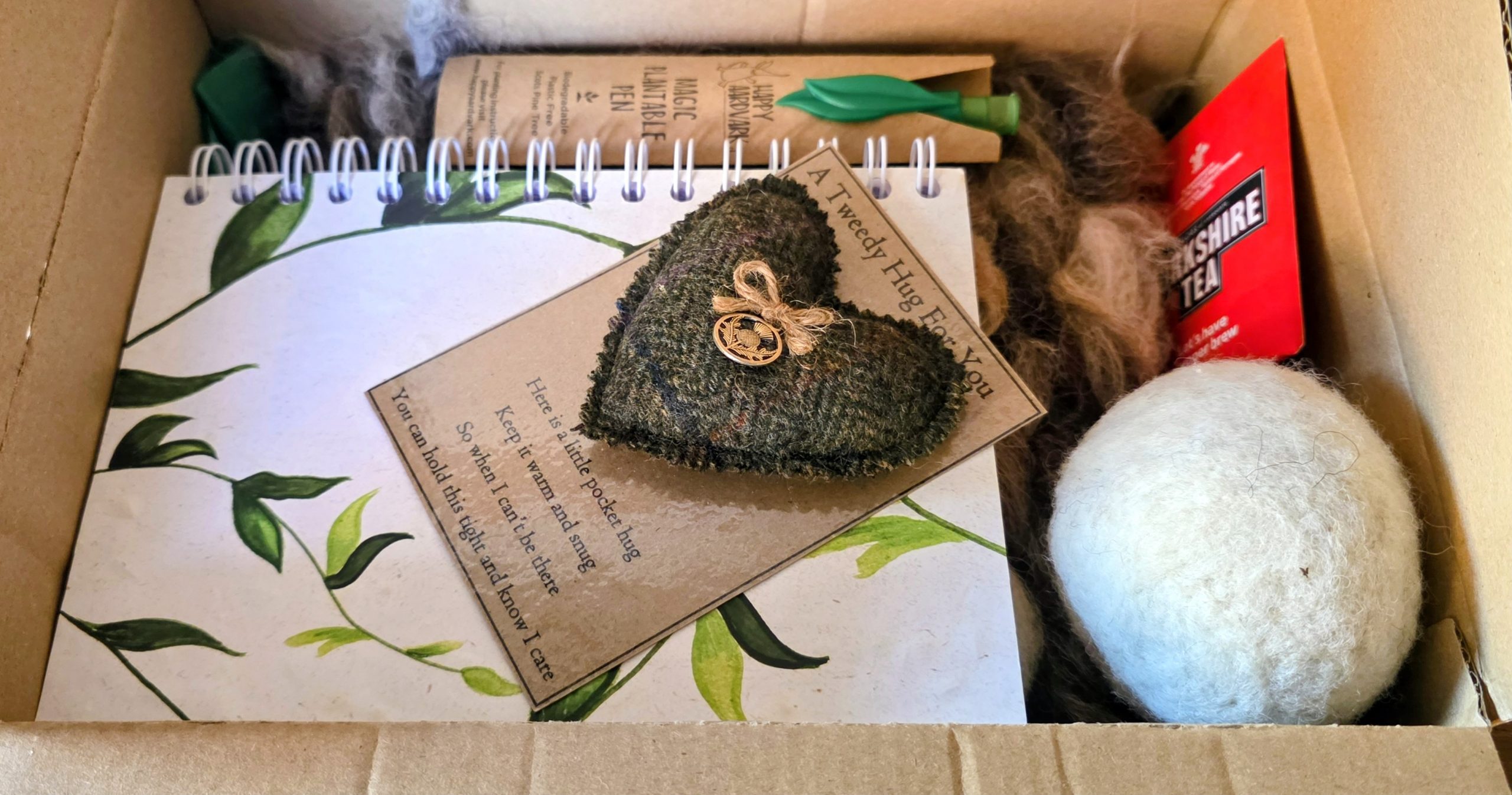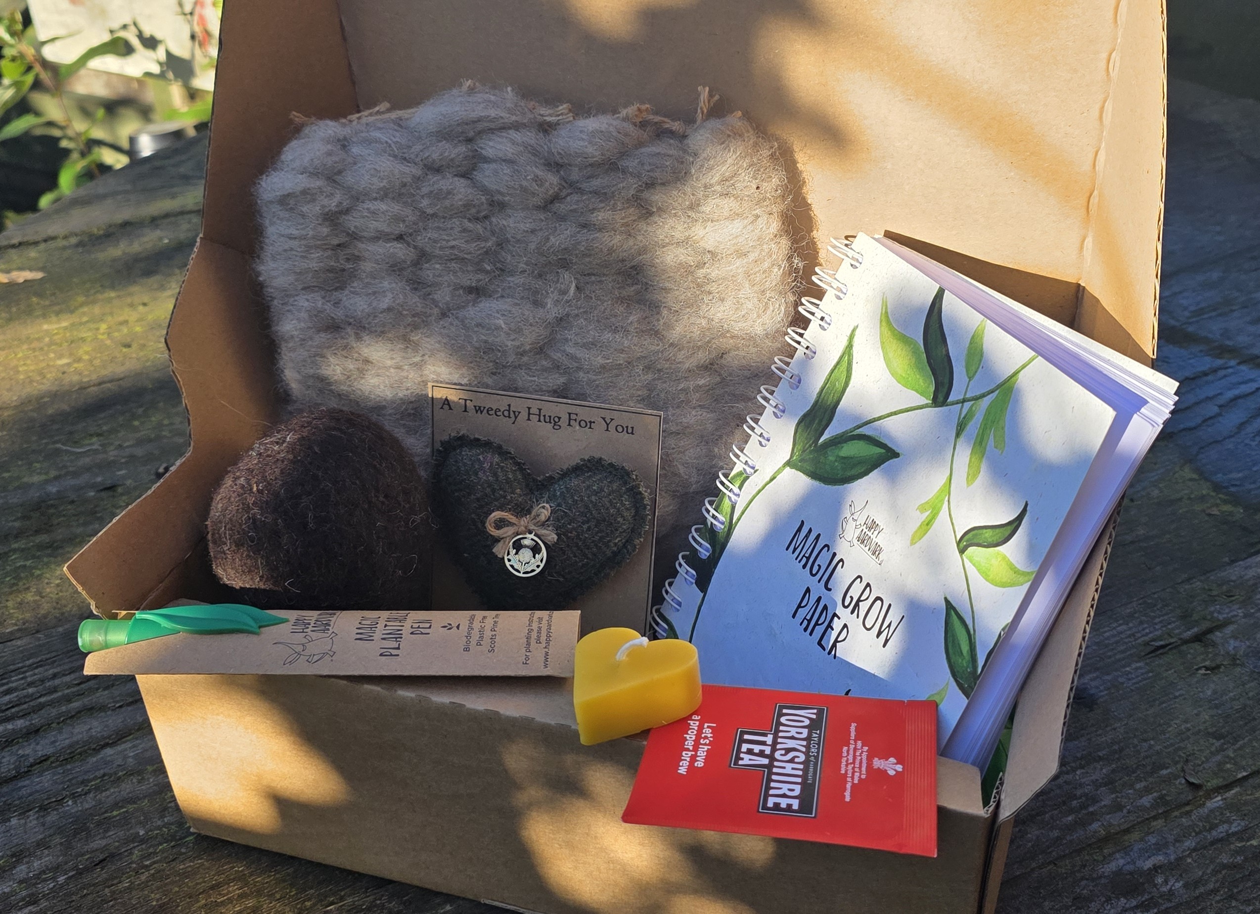 A cosy, feel-good box designed to give someone a moment of peace, comfort, and grounding. Every element is handmade from natural materials, with a strong Yorkshire soul running through it. It’s the kind of gift that quietly says, “Slow down my love, you deserve five minutes.”